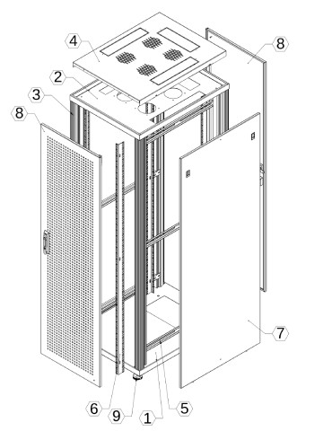 | 4 | פגודה (כיסוי עליון) | עם חורי איוורור לכיסוי המאווררים וחורים לכניסת כבלים ב-3 כיוונים | פלדה מעורגלת בקור (CR) | 1.25 |