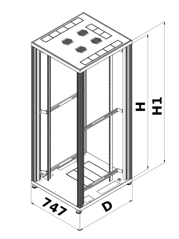 | 6 | זוויות עומק | 4 זוויות עומק עם חורי הכנה לדפינת ציוד 19" או זוויות אלומיניום עם חריץ רציף לקליטת אומי קפיץ |