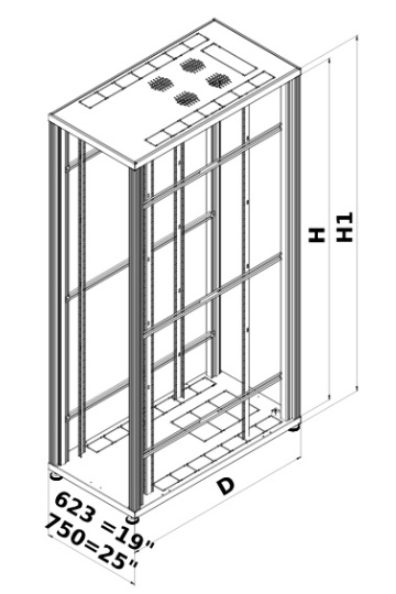| 6 | זוויות עומק | 4 זוויות עומק עם חורי הכנה לדפינת ציוד 19" או זוויות אלומיניום עם חריץ רציף לקליטת אומי קפיץ |